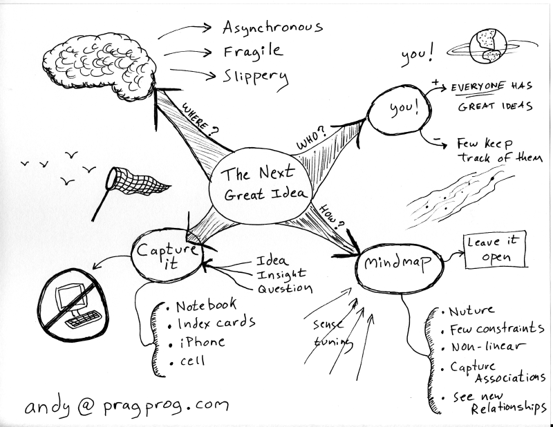 • carry something with you all the time to record notes – tools like The Pocket Mod or Evernote