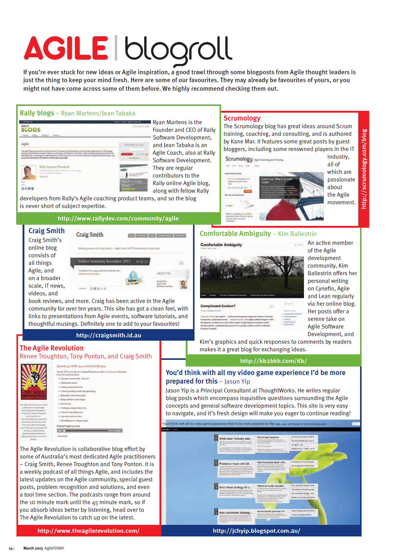 AgileTODAY is a publication associated with the Agile Australia conference that is run by SlatteryIT. It is published quarterly and I have been lucky enough to have articles in the first two editions.